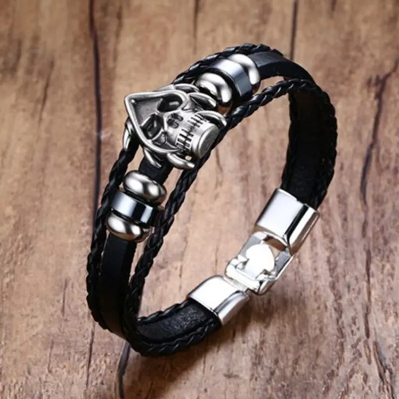 Уличный панк стиль многослойный ручной тканый браслет с призраком череп мужская индивидуальность...