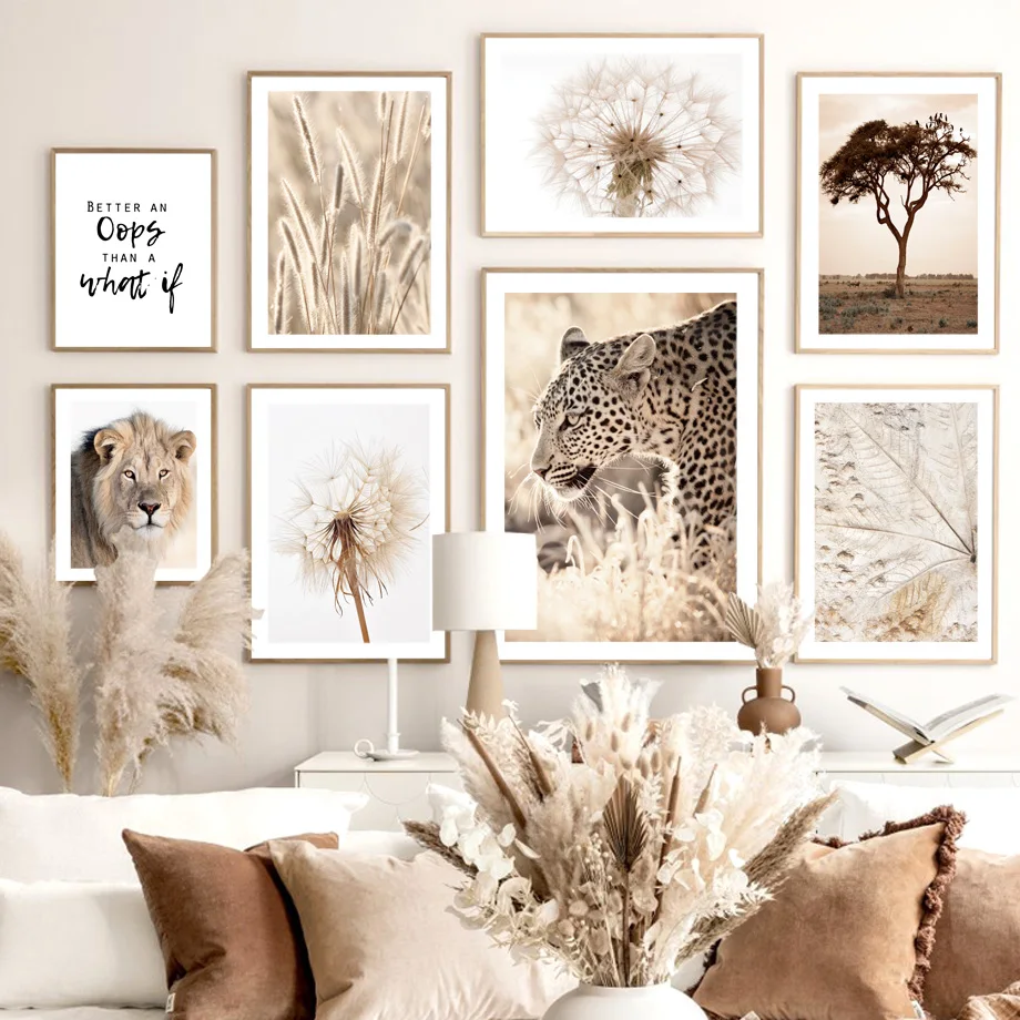 Одуванчик Рид леопард лев африканская пастбища художественная стена с цитатой Холст Картина плакаты и принты скандинавский стиль Декор для гостиной