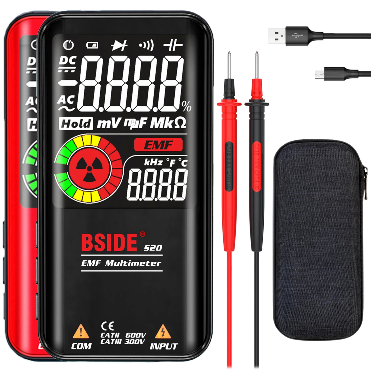 Цифровой мультиметр BSIDE с цветным дисплеем, 9999 отсчетов, Автоматический диапазон, вольтметр, перезаряжаемый с детектором EMF, тестер емкости диодов
