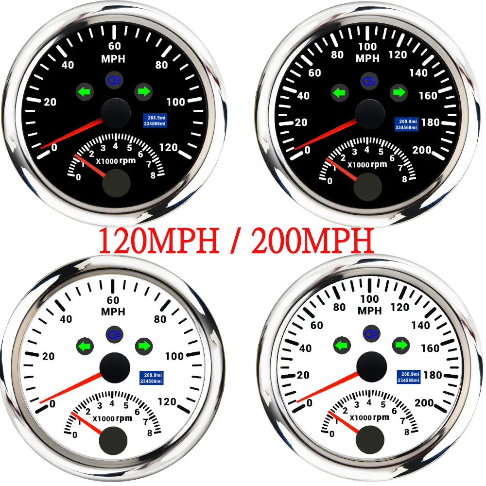 120 км/ч 200 км/ч 85 мм GPS измеритель скорости 0-200 миль/ч GPS скорость метр одометра с тахометром 8000 об/мин для автомобиля Лодка ATV с GPS антенной