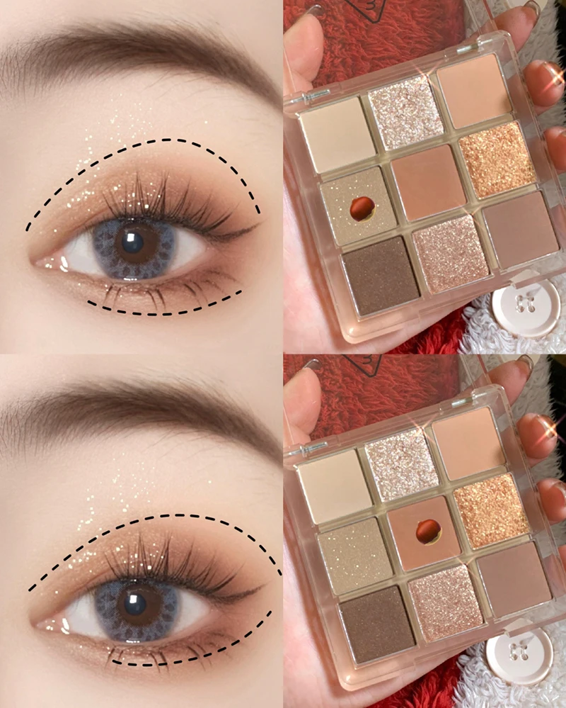 Палетка блестящих теней для век, 9 цветов, Палетка водостойких тене...