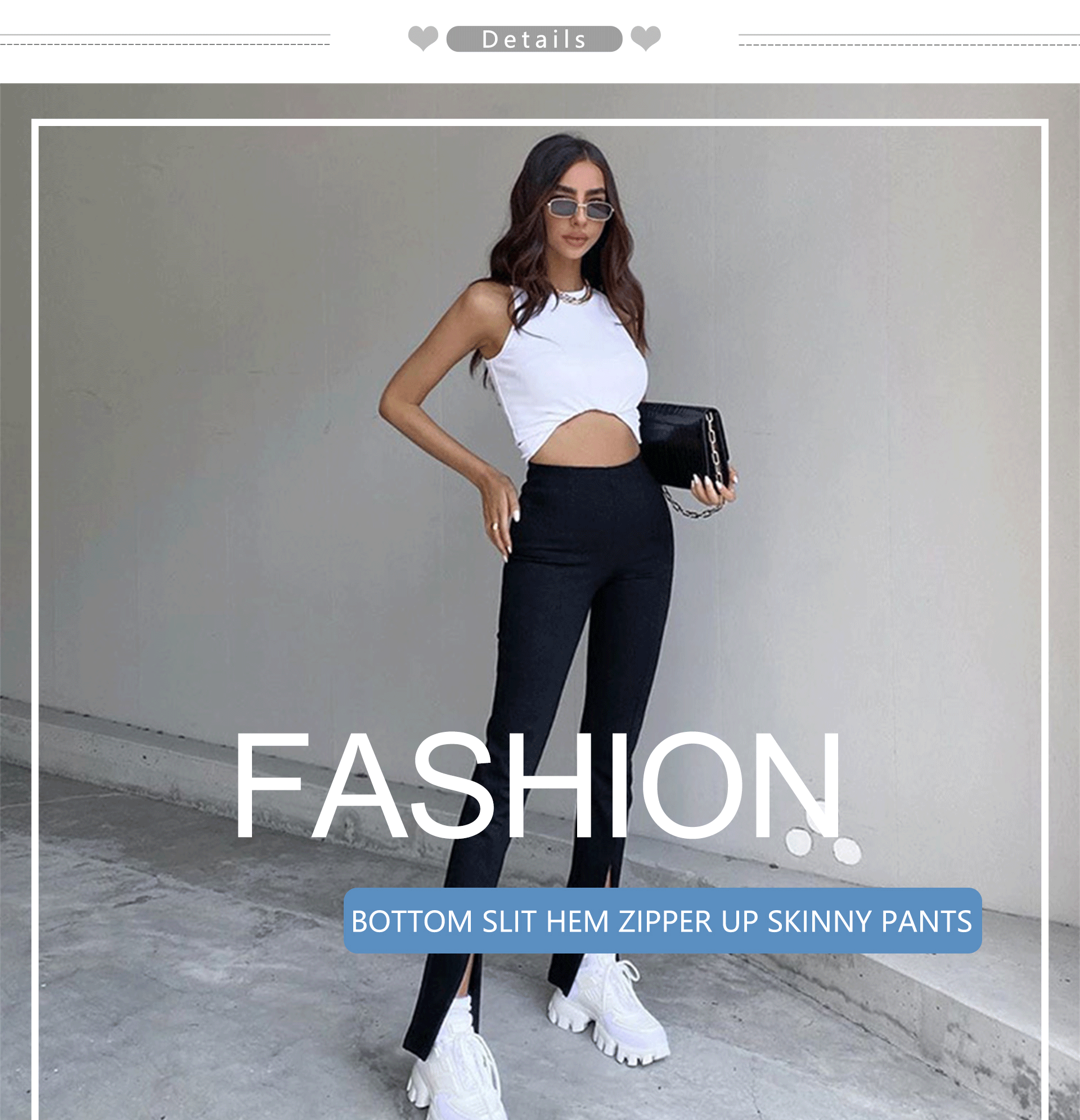 ОсеньЗима 2021, новая коллекция женской одежды, облегающие брюки на молнии с разрезом снизу