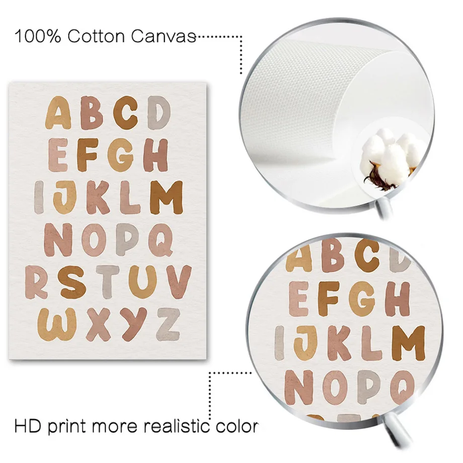 Алфавит с цифрами в стиле бохо, жираф, альпака, медведь, настенная ...