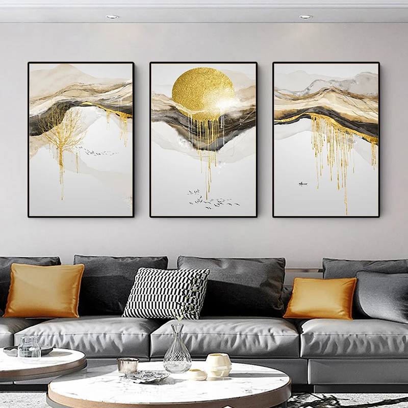 Абстрактная Картина на холсте с золотым солнцем, пейзаж, настенные картины, Большие плакаты, модные картины, декор для гостиной в скандинавском стиле