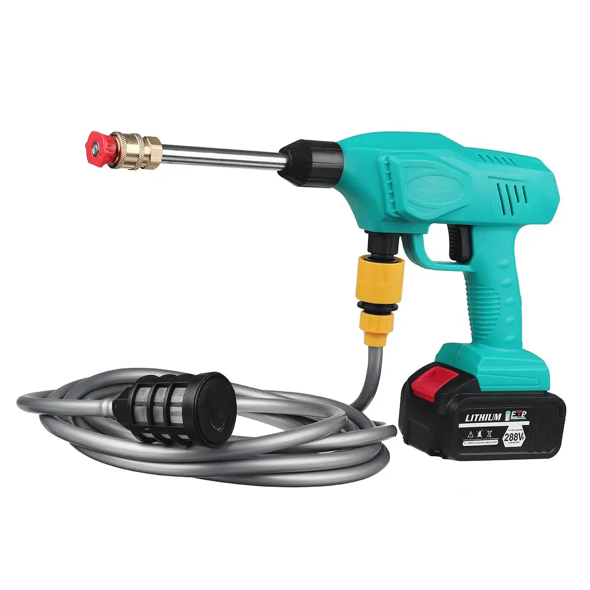 Рабочее давление: 50 барРасход воды: 6 л/минЗарядное устройство Напряжение: AC 100-240V 50/60HzДлина водопровода: 5 метровАдаптируется к батарее Dayi!Область применения: мытье автомобиля, мытье пола, мытье стен, мытье стекла, мытье овощей, мытье морепродуктов