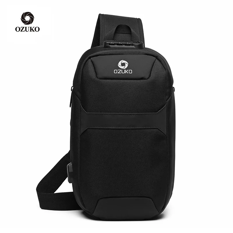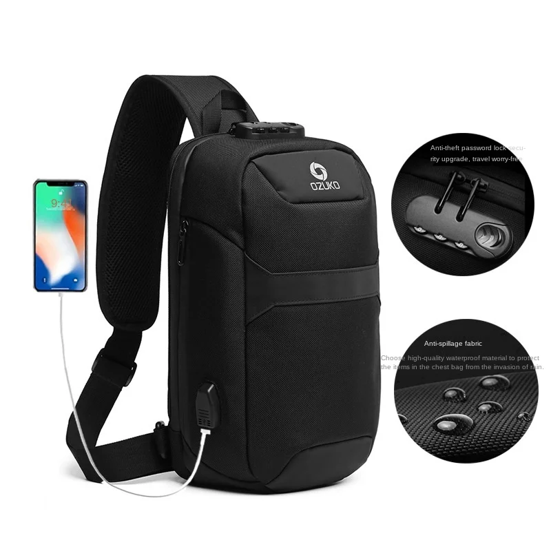 Нагрудная сумка OZUKO мужская с USB-зарядкой, водонепроницаемый мес...