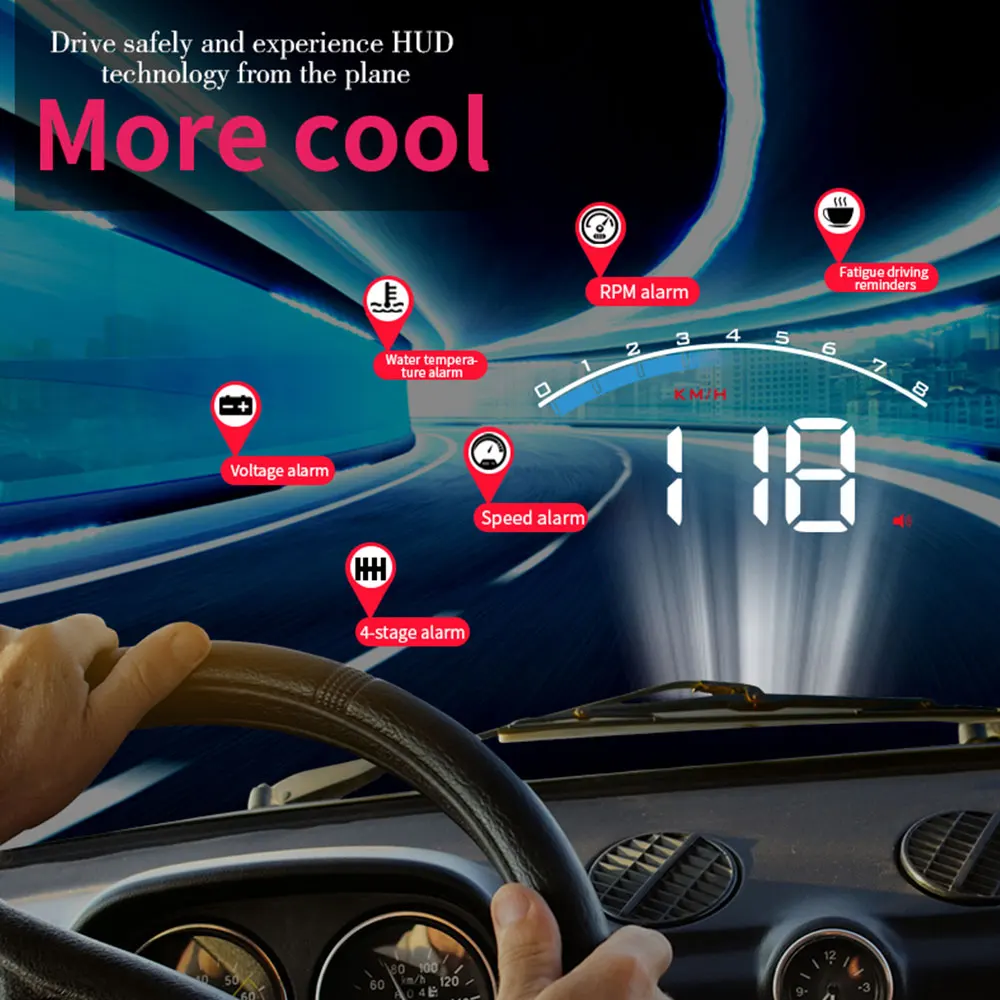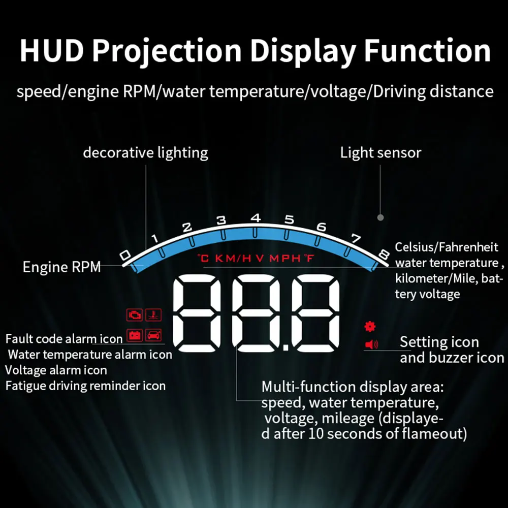 -Безопасное вождение: Навигация и информация на уровне глаз вместо того, чтобы смотреть вниз repeatediy, чтобы обеспечить более безопасное вождение.-Значок будильника: высокая температура воды/Сигнализация низкого напряжения/напоминание о сдвиге/сигнализация о превышении скорости/Усталость вождения/ошибка двигателя-Многофункциональность: об/мин/напряжение/Расстояние вождения/часы/Температура воды/расход топлива