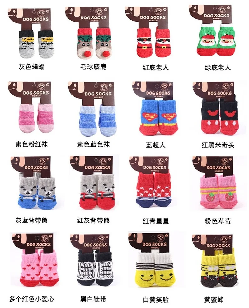 4 шт.компл. носки для домашних животных, Нескользящие вязаные ботин...