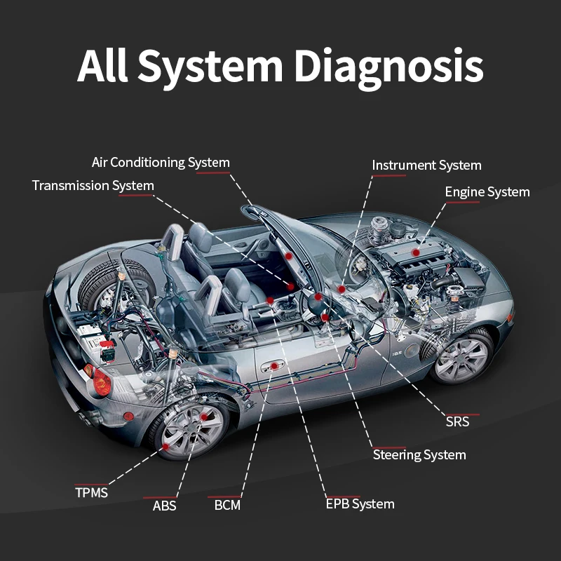 "С превосходными диагностиками всех систем, этот универсальный obd2 сканер может быть использован для чтения всех доступных систем ЭБУ информации, чтобы облегчить диагностику транспортного средства. Полные системы отличаются от различных автомобилей, и они обычно включают двигатель, трансмиссию, ABS, SRS, SAS, TPMS, EPB и шасси/корпус/электрическое оборудование и т. Д.* Проверьте свой автомобиль, как профессиональный механический техник* Прочитайте DTCs из всех электронных систем управления транспортного средства, чтобы найти проблемные зоны и предложить решения;* Легко Стирайте коды после получения DTCs и проведения определенного ремонта и выключите индикатор неисправности;* Реальные данные показывают каждый элемент параметра sendor, отображаемый в аналоговом, текстовом, волноводном графическом режимах и т. д.;