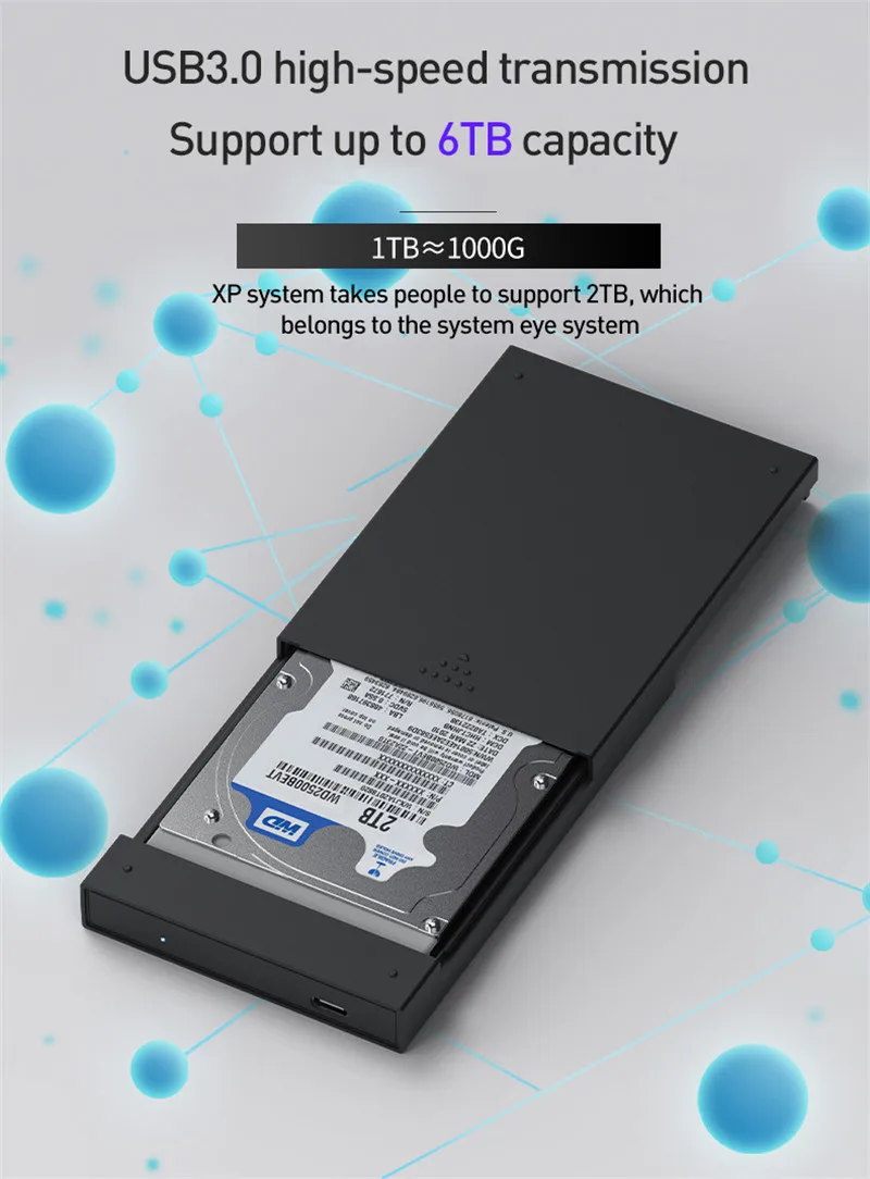 1. The 2.5-inch SATA serial hard disk box restarts your idle hard disk with 500M/s high-speed transmission