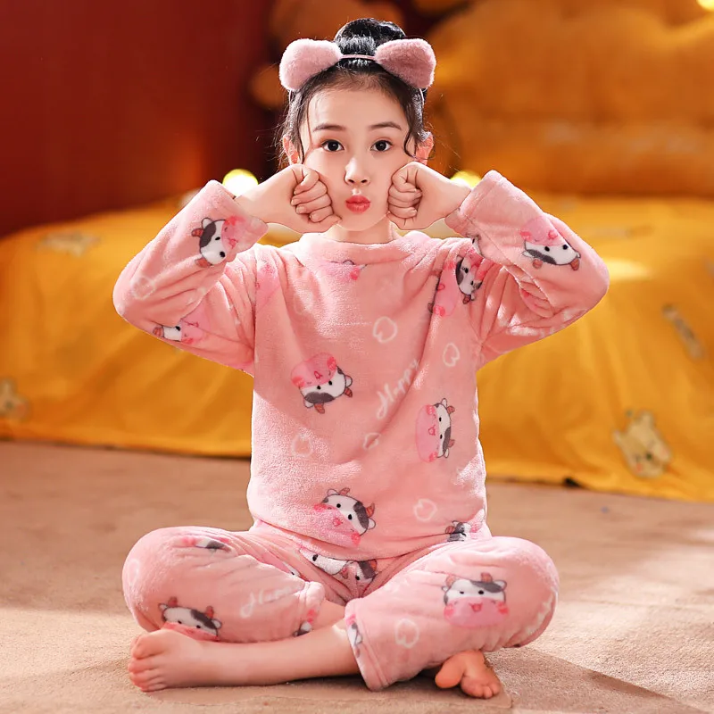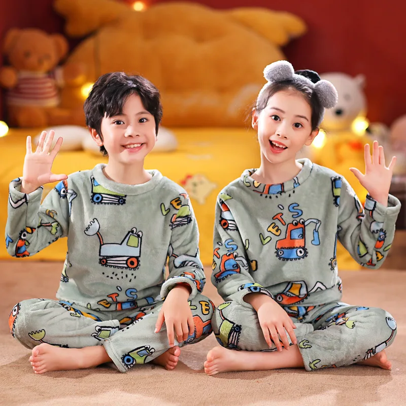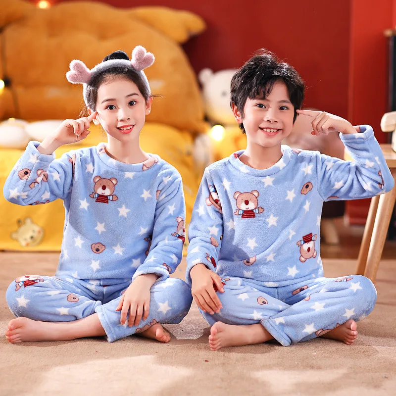 Детский Пижамный комплект для мальчиков и девочек, мультяшная одежда для сна, зимняя Фланелевая пижама, домашняя одежда для детей, одежда для сна, комплекты одежды для подростков