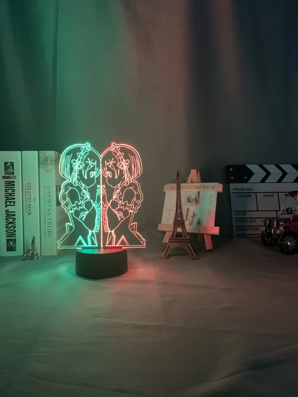 Аниме 3d лампа Рем и Рам от Re Zero начало жизни в другом мире ночсветильник для спальни Декор подарок на день рождения светодиодный ночсветильник