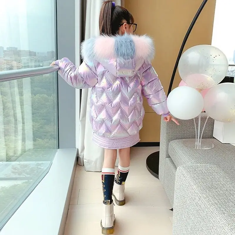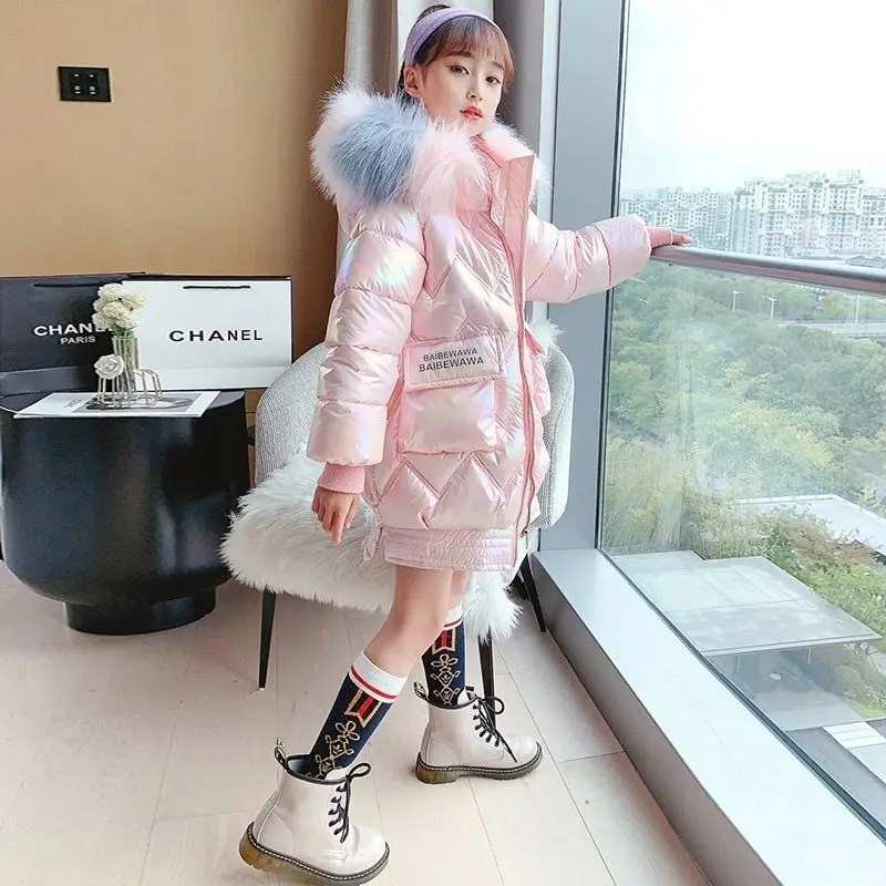 Детская верхняя одежда для игры в снегу 2021, водонепроницаемая и снегозащищенная пуховая хлопковая куртка для девочек, толстое пальто с капюшоном и воротником из искусственного меха