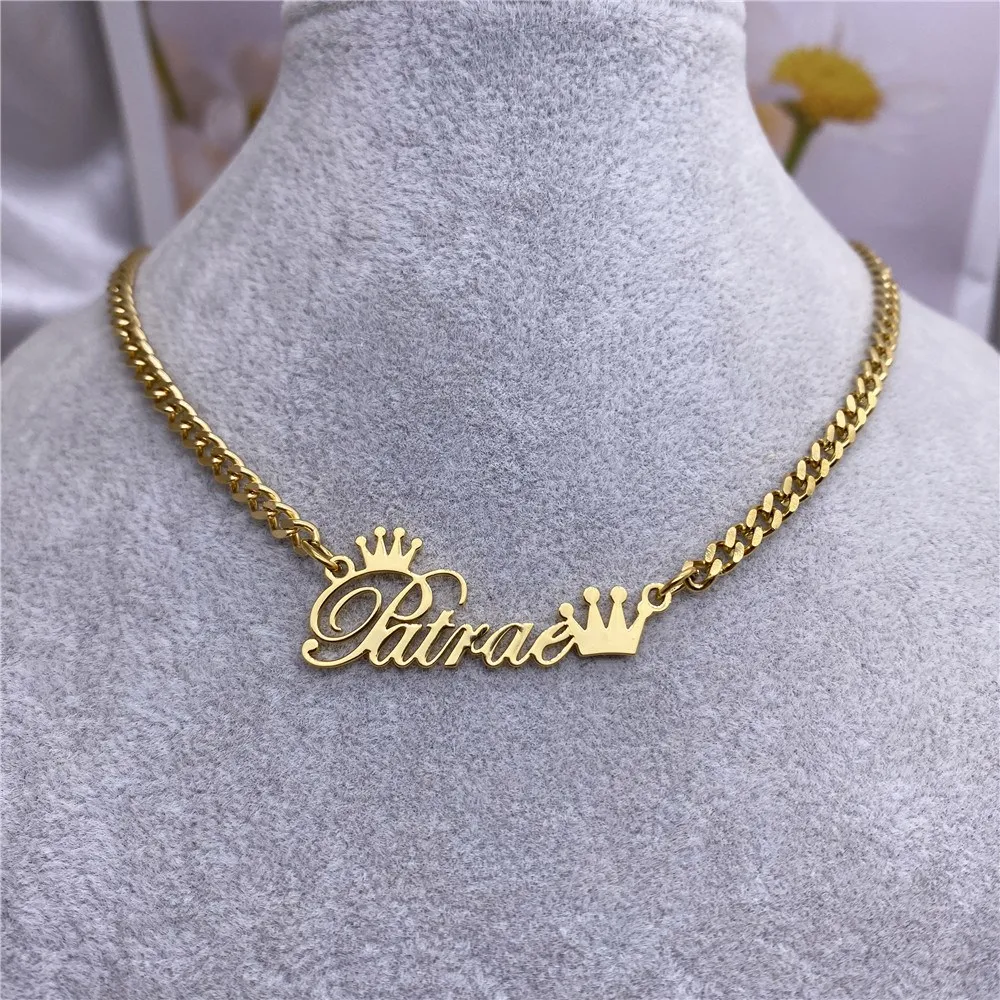 Ожерелье с именем на заказ, кубинская цепочка из нержавеющей стали с короной, колье на заказ, золотое ожерелье, ювелирные изделия, подарок на день Святого Валентина