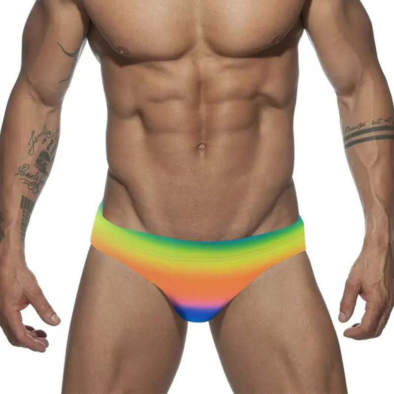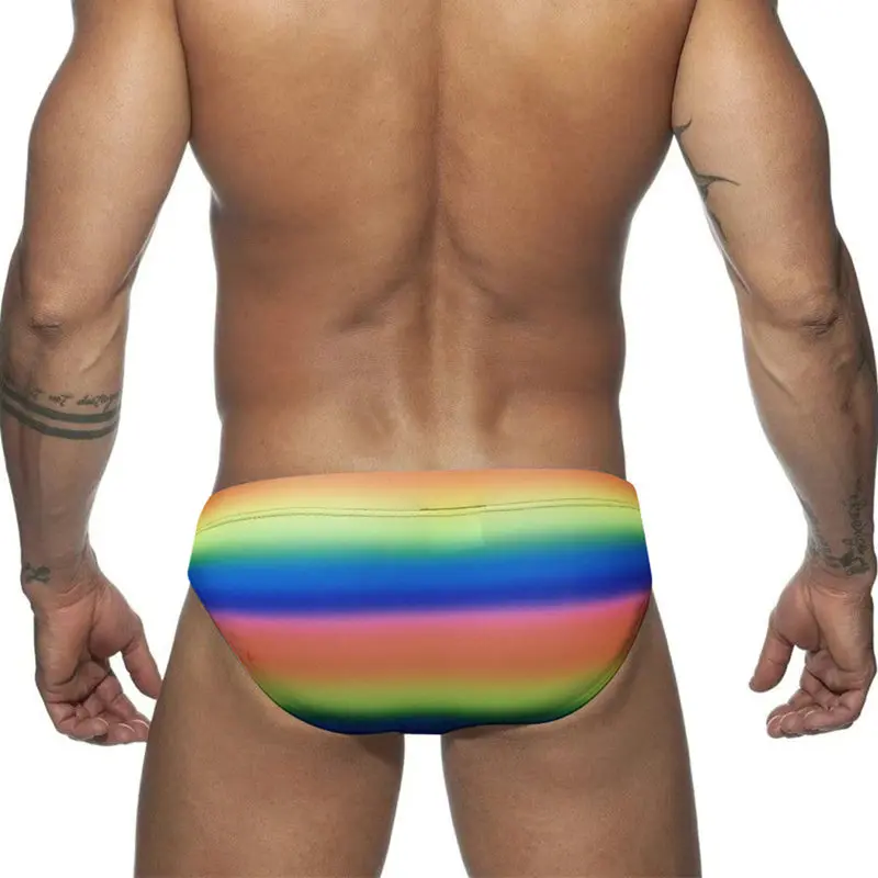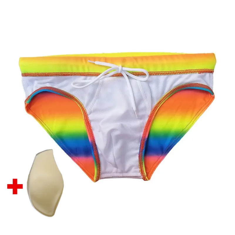Мужские плавки пуш-ап, сексуальные плавки, бикини, купальный костюм, Радужный костюм для серфинга, пляжные шорты, нижнее белье для геев, накладка на пенис