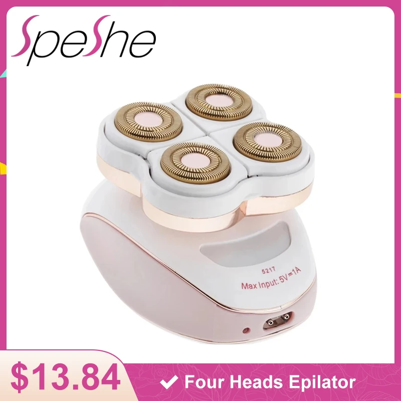 SPESHE женский Электрический эпилятор с четырьмя головками, безболезненный портативный эпилятор для эпиляции, бритва с usb-зарядкой, водонепроницаемые бритвы