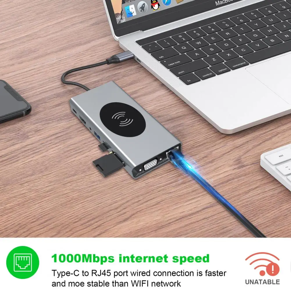 Док-станция с разъемом типа C портативная многофункциональная 12 в 1 USB-C к HDMI RJ45 VGA концентратор для компьютера