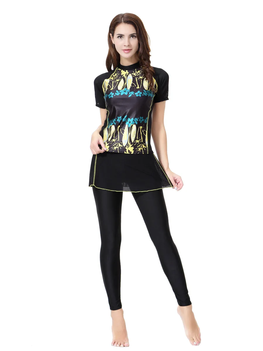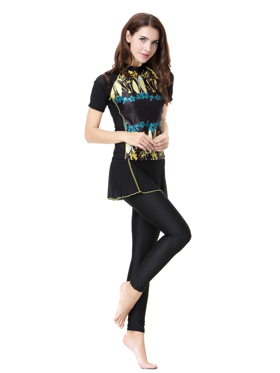 Женский Мусульманский купальник с коротким рукавом и юбкой