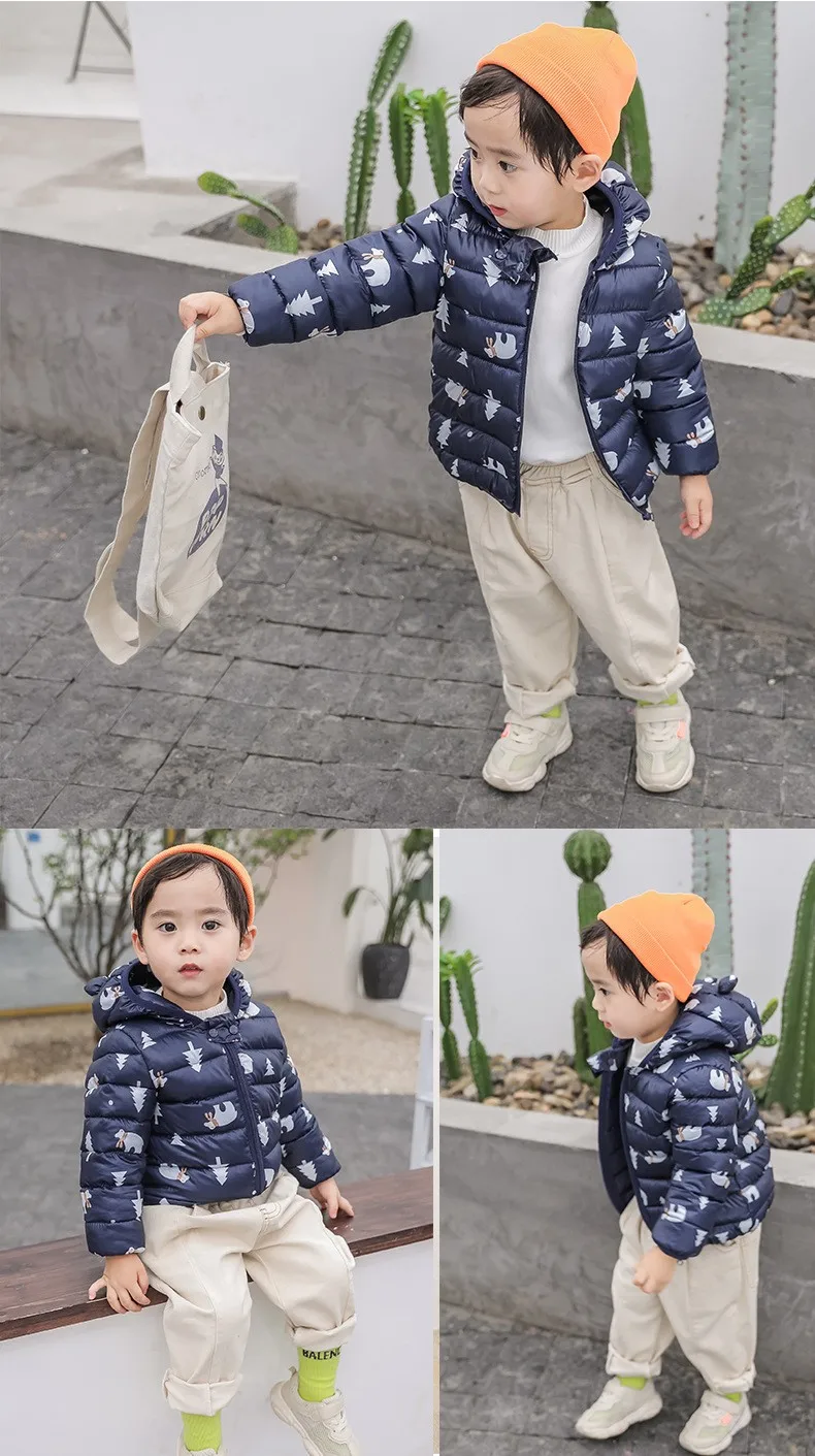 Зимняя одежда для маленьких детей, пуховик с мультяшным принтом для малышей, Детская Хлопковая стеганая одежда, повседневные теплые пальто для мальчиков