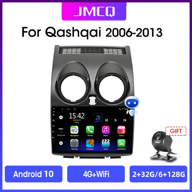 Автомагнитола JMCQ, 2 Din, Android 10, DSP, GPS-навигация, мультимедийный видеоплеер, автомобильная стереосистема для Nissan Qashqai 1 J10 2006-2013 CarPlay