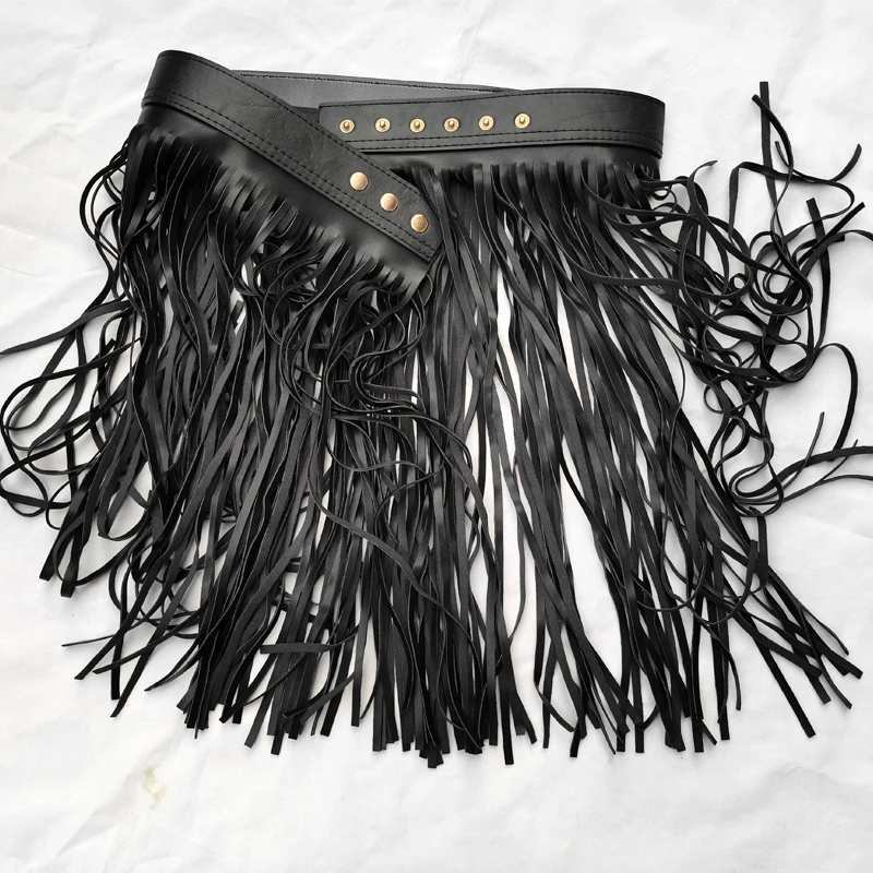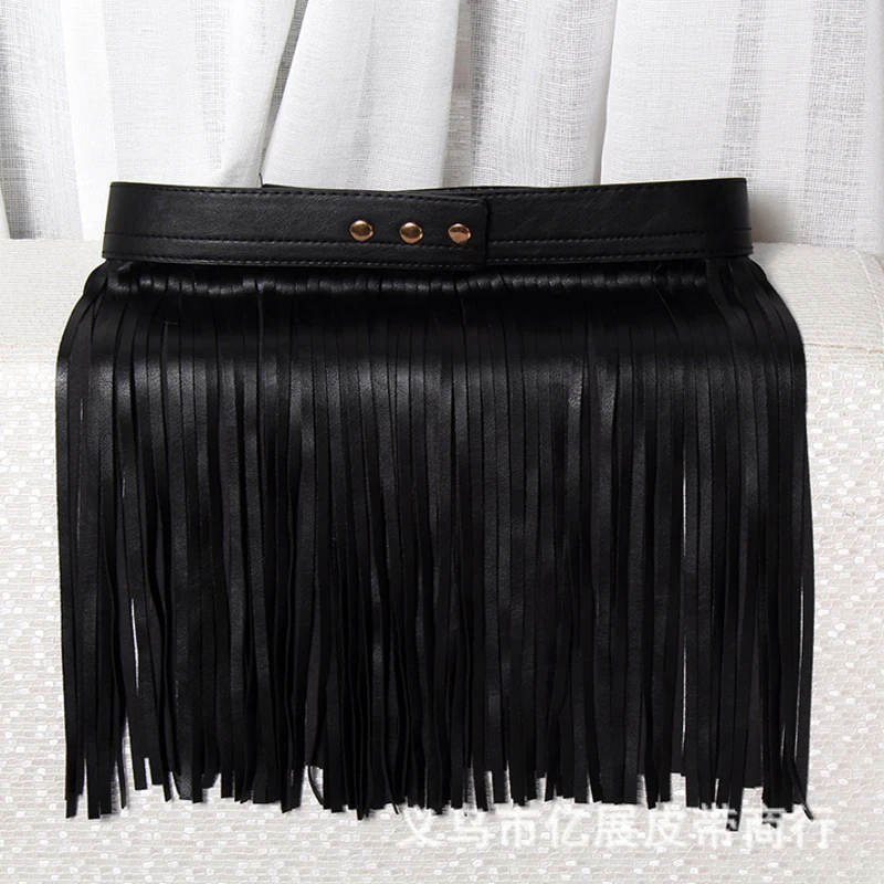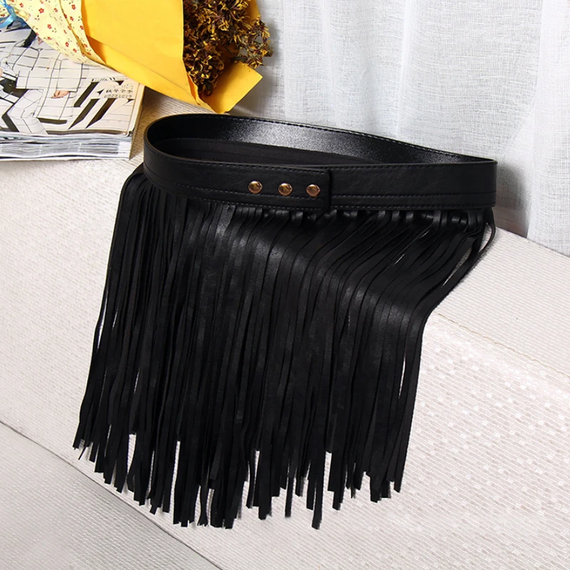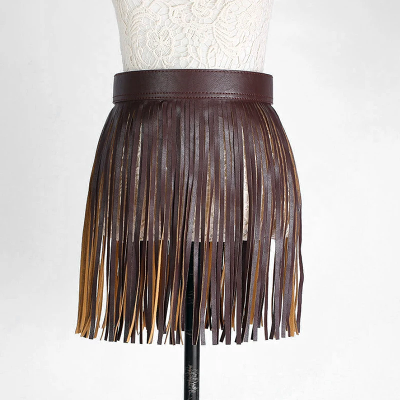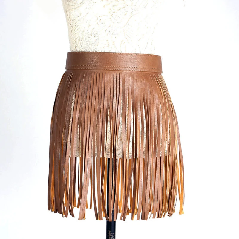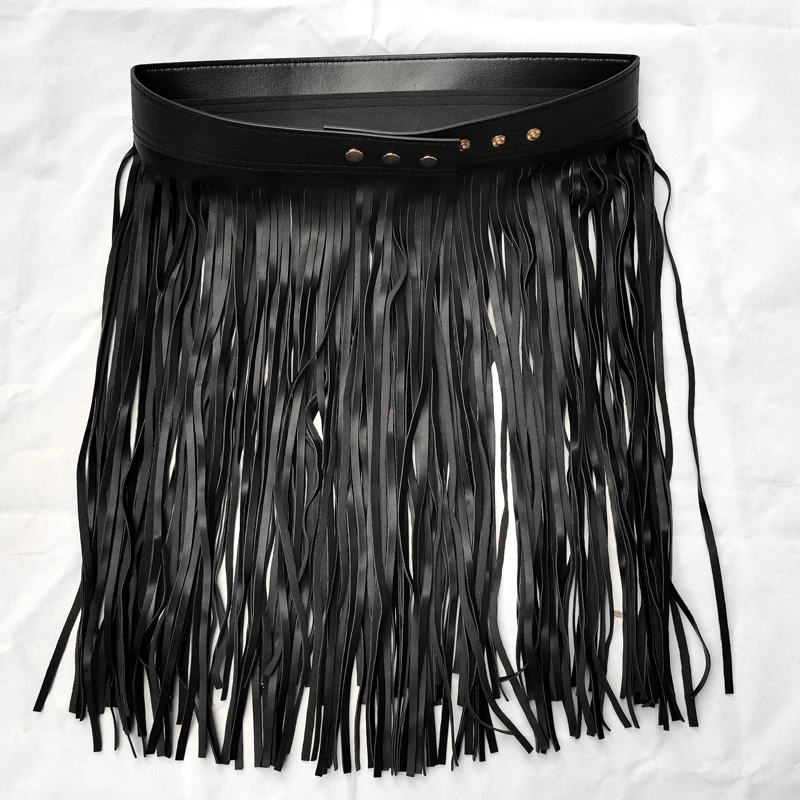Женский ремень из искусственной кожи с высокой талией и бахромой