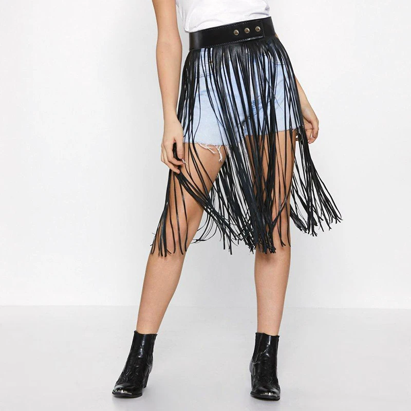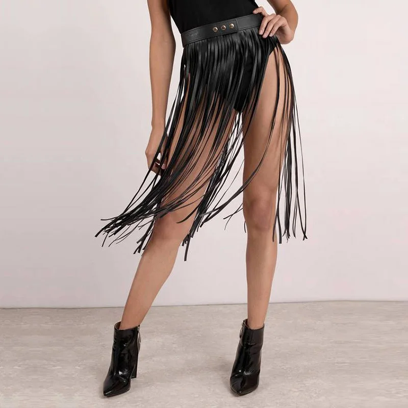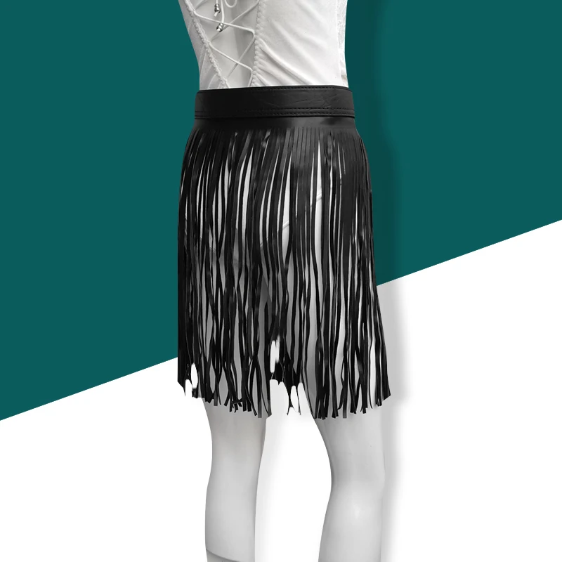 Женская юбка с бахромой Goth, короткая кожаная юбка в стиле бохо, для ночного клуба, косплея, пляжной вечеринки, одежда для танца живота