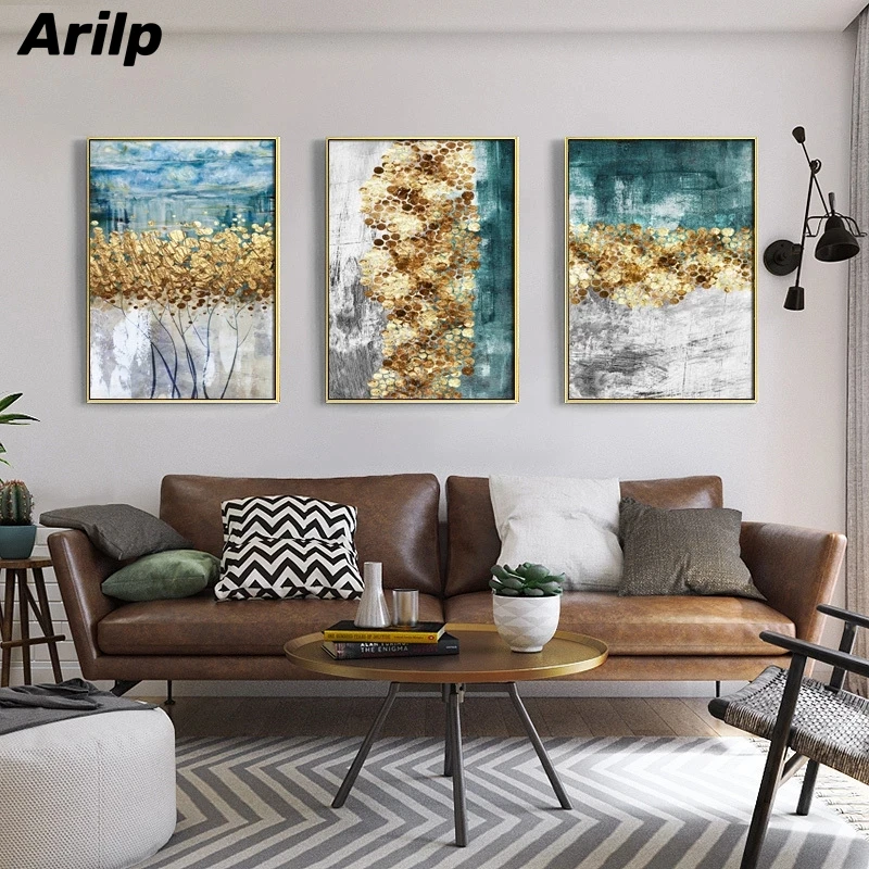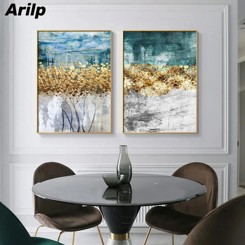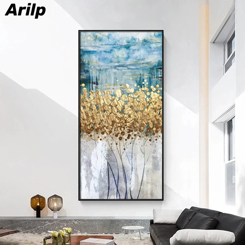 Современная Настенная Картина на холсте золотое дерево удачи абстрактный Золотой художественный постер печать Настенная картина для гостиной крыльца Декор