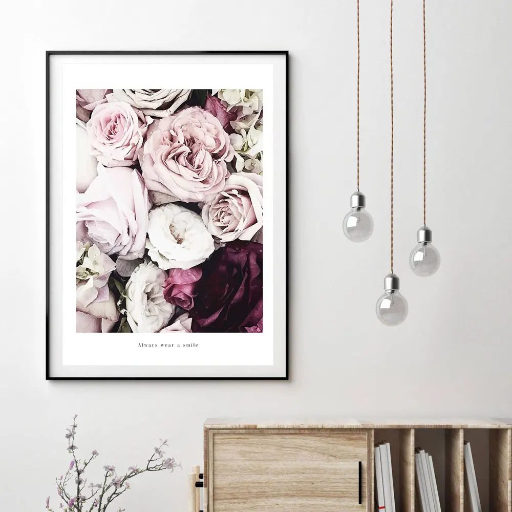 Плакат для леди с розовыми и белыми цветами, индивидуальный плакат,...