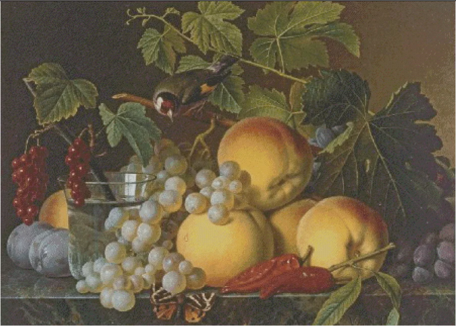 Наборы для вышивки крестом 14CT, виноград, персики, натюрморт