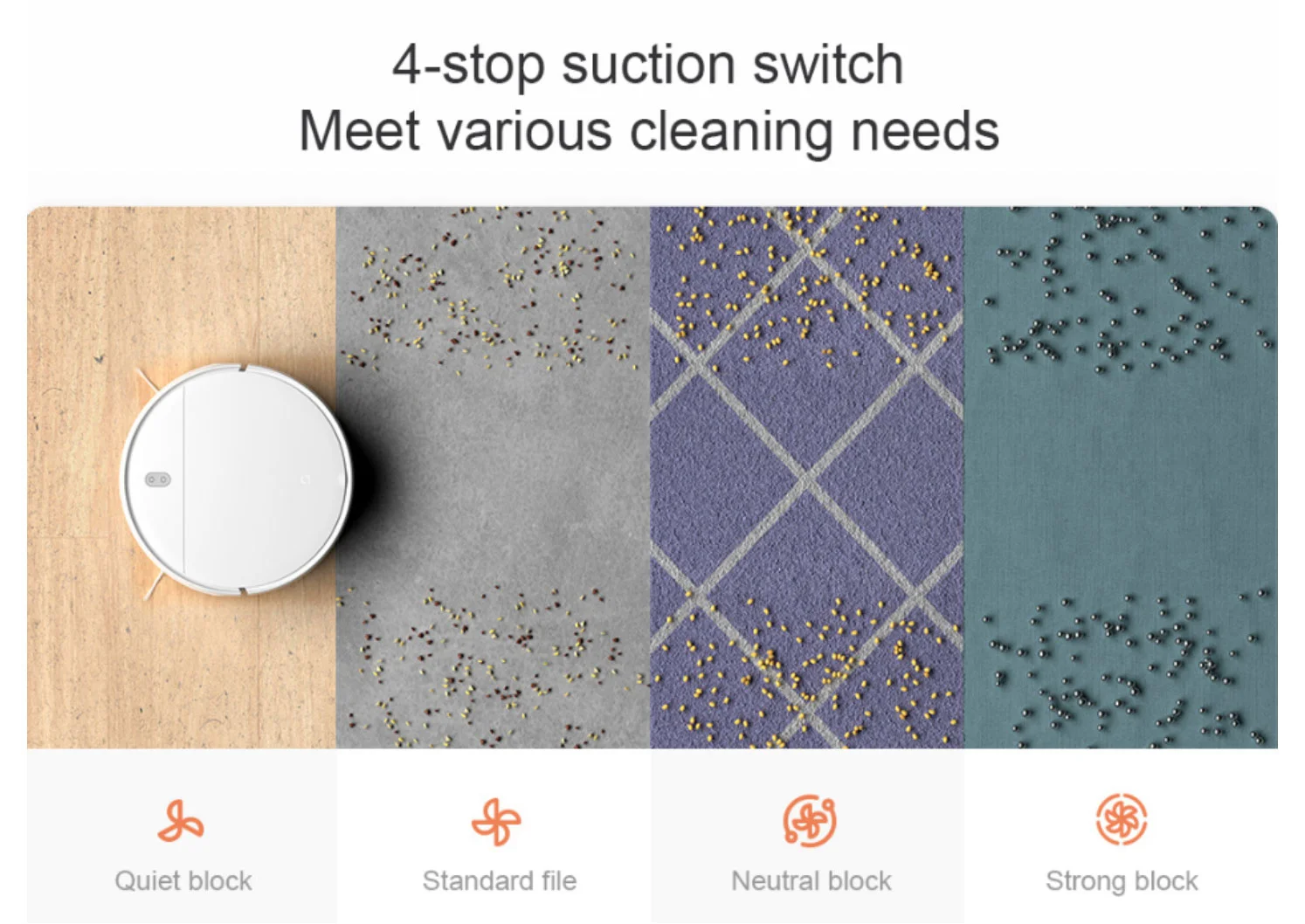 4-stop всасывания переключатель-удовлетворить различные чистящие потребности4 различных всасывания мощности установлены для различных комнат и различных грязи. Его можно легко обрабатывать от стальных шариков до соевых бобов до пепла и волос.Тихий блокМожет очистить пыль и волосыЧистите тихо и элегантноСтандартный файлМожет очищать грязь, такую как конфетти и семенаПодходит для ежедневной уборкиНейтральный блокМожет очищать грязь соевого размераПодходит для сильной очисткиПрочный блокМожно очистить размер стальных шариковПодходит для глубокой очистки