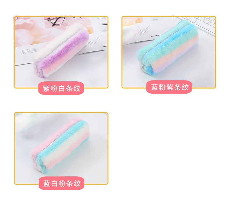 Разноцветный плюшевый пенал, чехол для цветных карандашей, плюшевый...