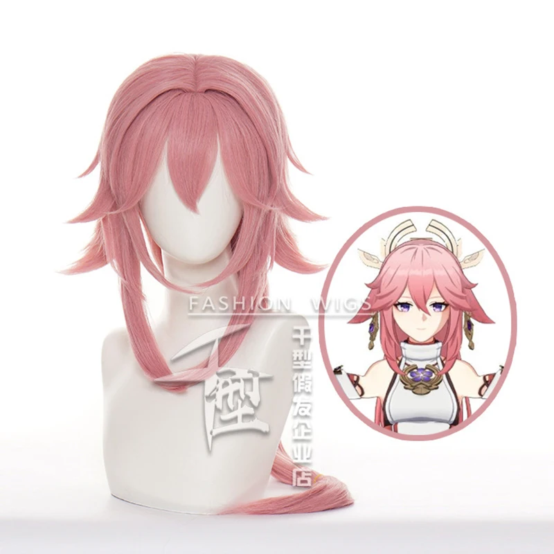 Длинный парик Game Genshin Impact Yae Guuji Pink, парик для косплея, термостойкие синтетические волосы Yae Miko, женские парики для ролевых игр