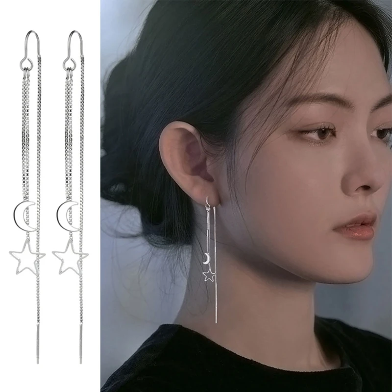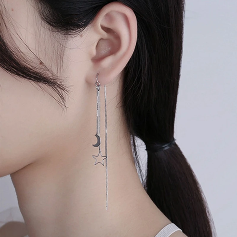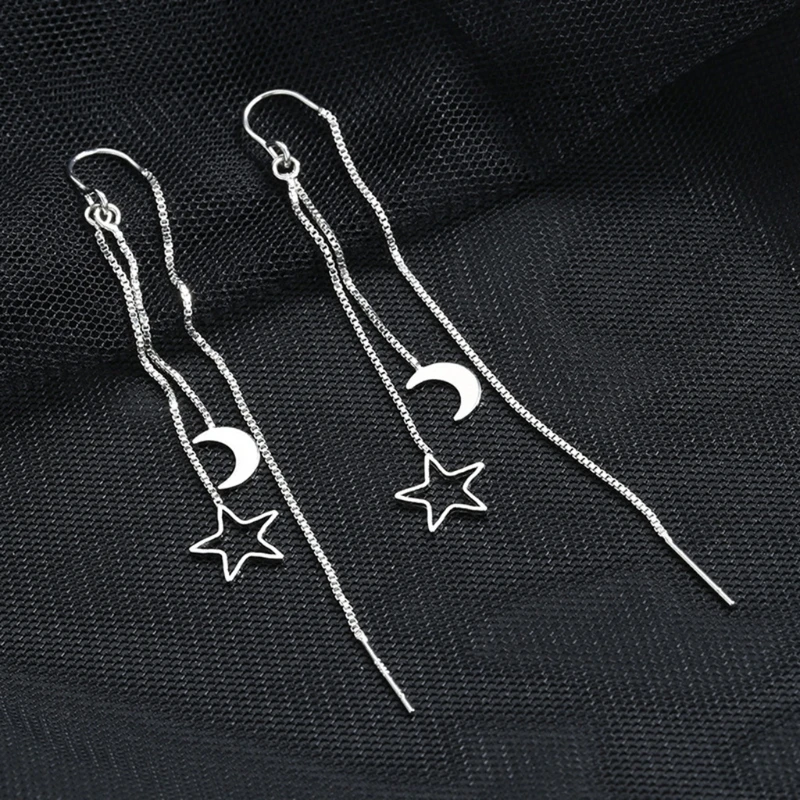 Милые серьги с Луной и звездами из натуральной нитки, изящные подарки на годовщину для женщин и девушек, длинные цепи