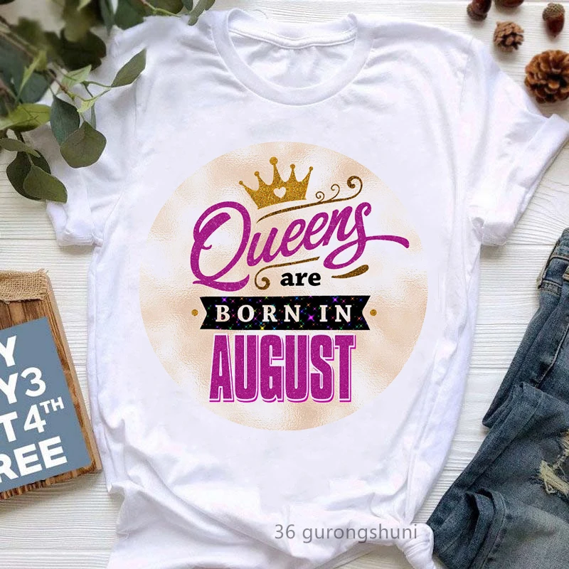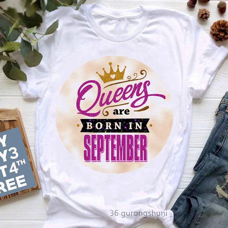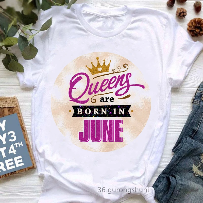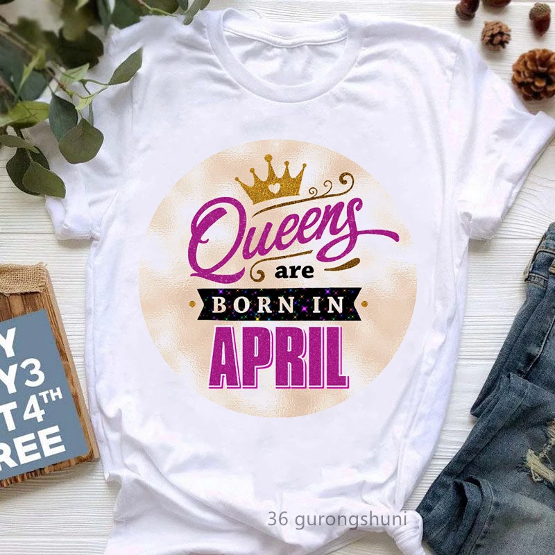 Футболка с графическим принтом Золотая Корона, королева рождена от января до декабря, женская одежда, футболка, женские топы на день рождения