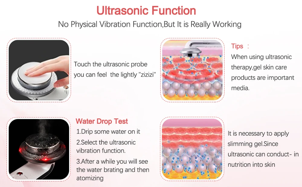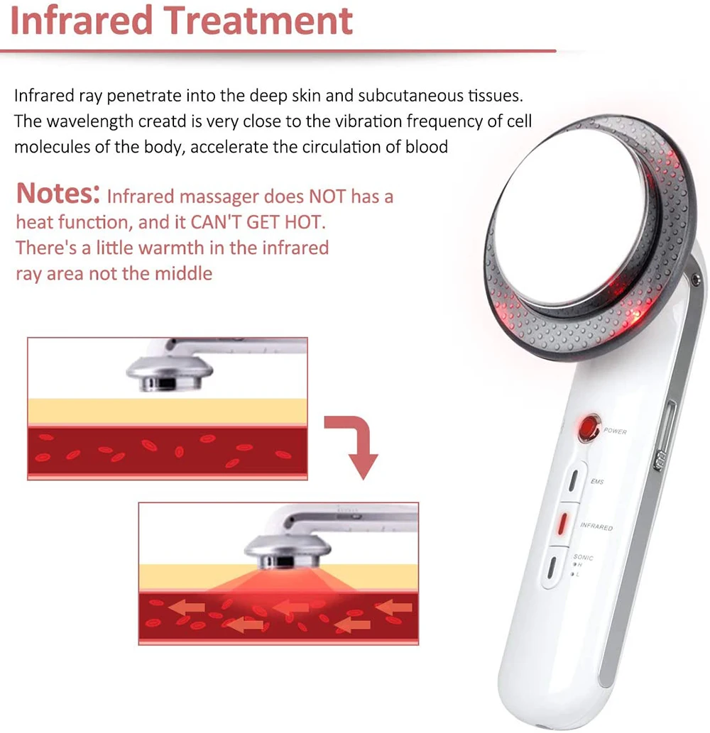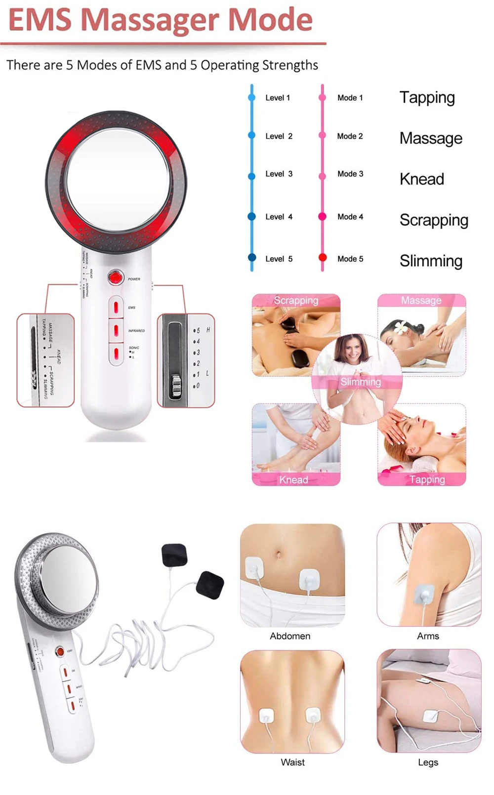 1. Ультразвуковой: обеспечивает высокочастотный Вибрационный массаж и теплое лечение, ускоряет обмен веществ и улучшает процесс регенерации тканей для эффекта сжигания жира, не возвращая вес