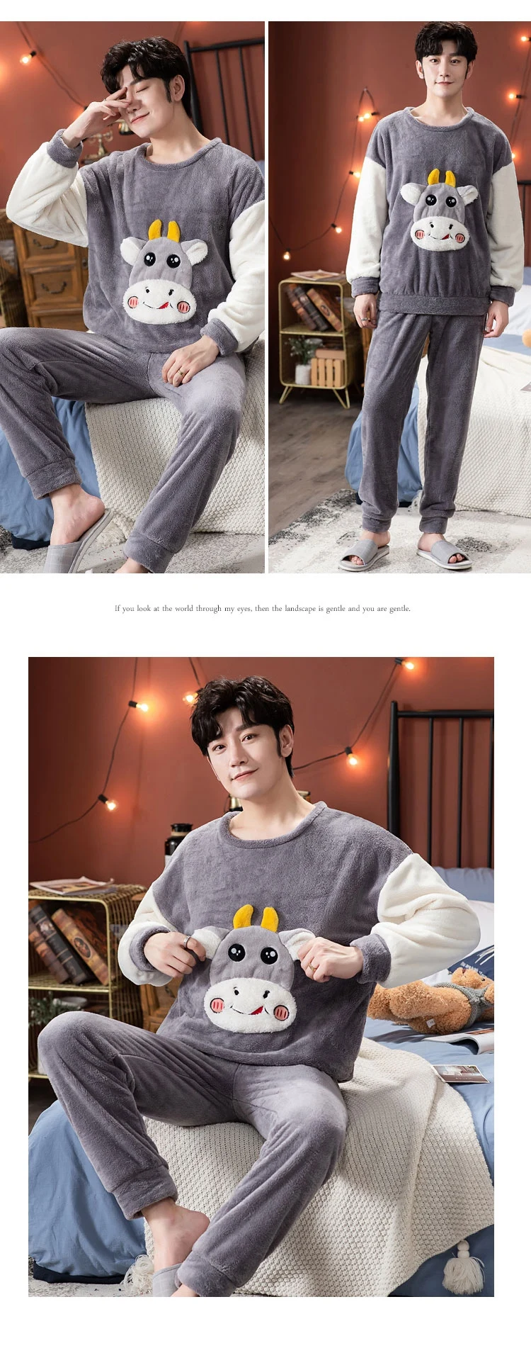 Зима 2021, Толстая теплая Фланелевая пижама с длинным рукавом для мужчин, повседневная одежда для сна в полоску, коралловый бархат, костюм, пижама, домашняя одежда