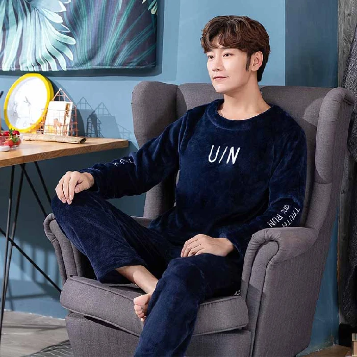 Мужские пижамные комплекты большие Размеры L-3XL фланель с О-образн...