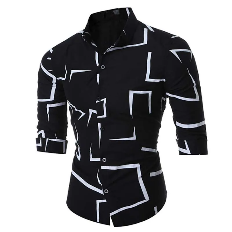 Мужская Черная Рубашка с геометрическим принтом, кардиган с длинными рукавами, в стиле Харадзюку, повседневные рубашки Блузы