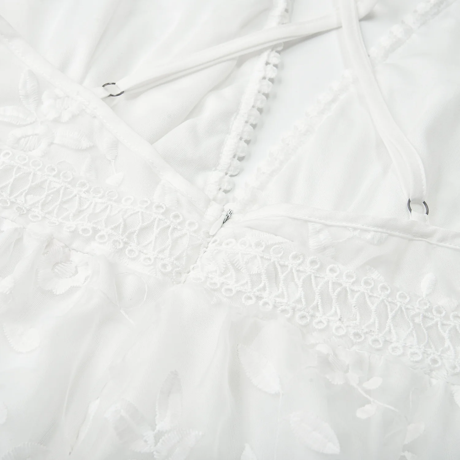 Летние белые платья с цветочной вышивкой, Сетчатое кружевное пляжно...