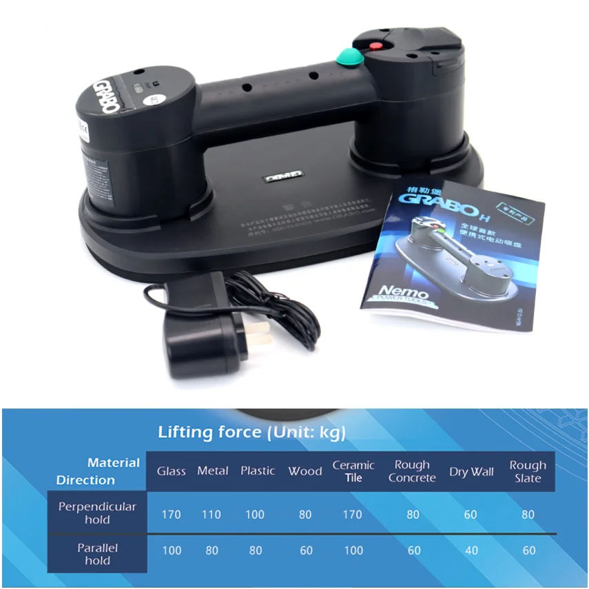 Grabo H портативный Электрический вакуумный подъемник на присоске для дерева, гипсокартона, гранита, стеклянной плитки, тяжелого подъемного инструмента