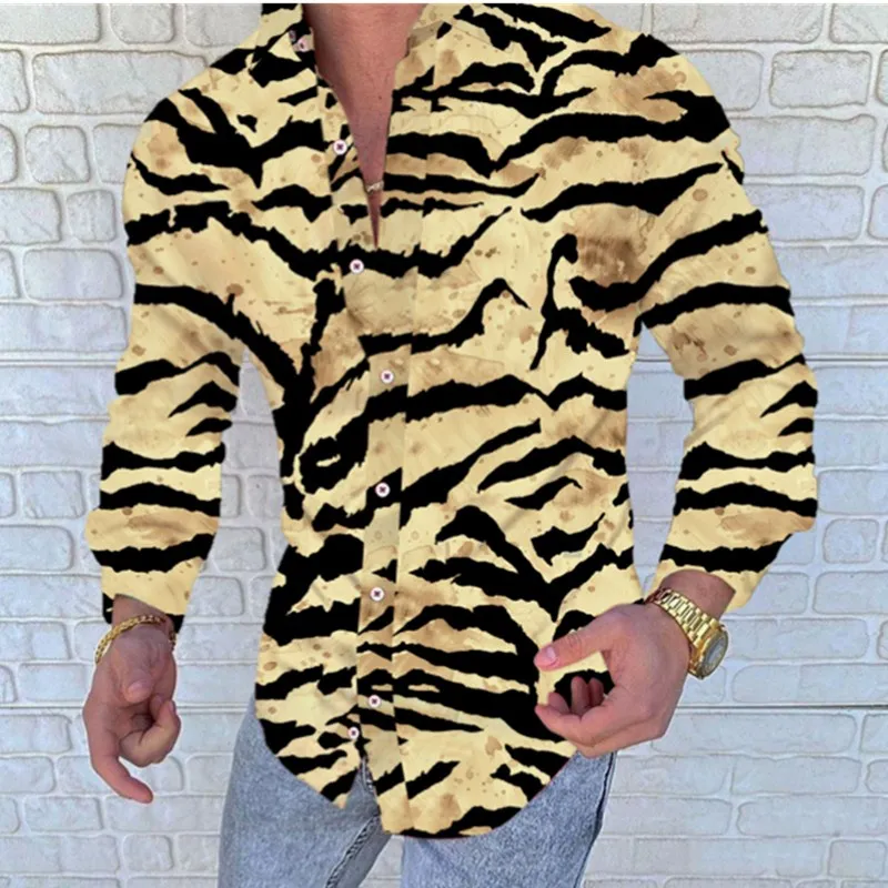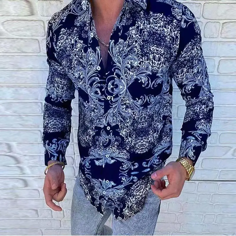 Мужская приталенная Повседневная рубашка, модная брендовая Праздничная рубашка с длинным рукавом и принтом, одежда для мужчин, осень 2021