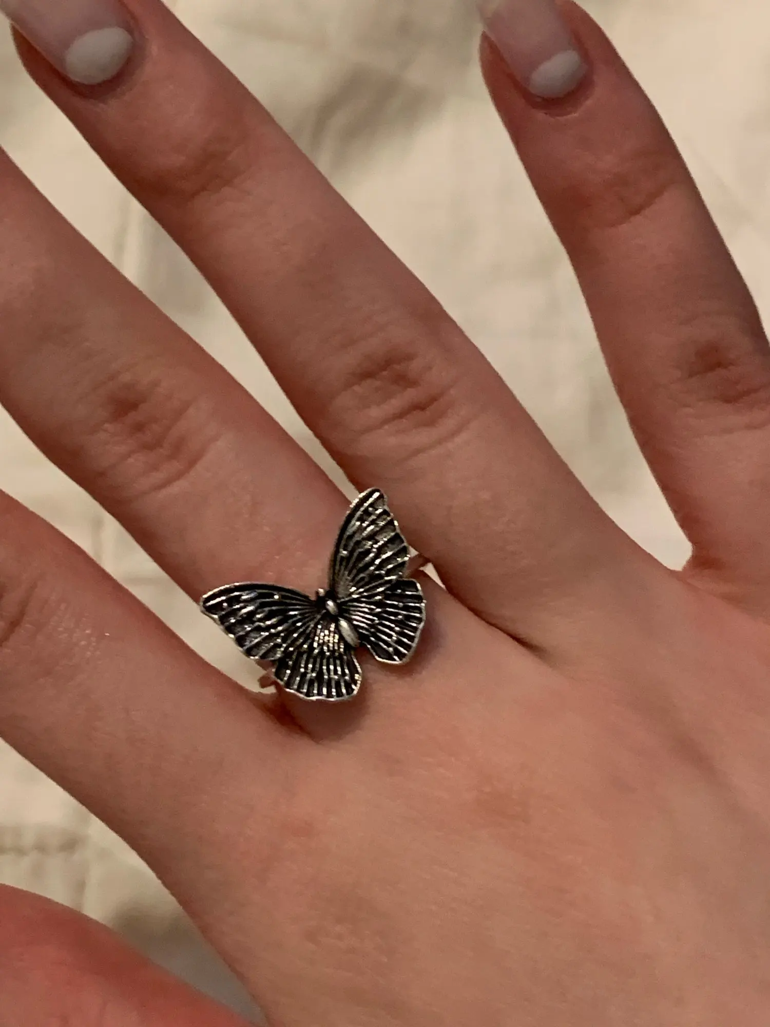 Носила два дня, на третий день кольцо погнулось, а бабочка и вовсе отвалилась :((