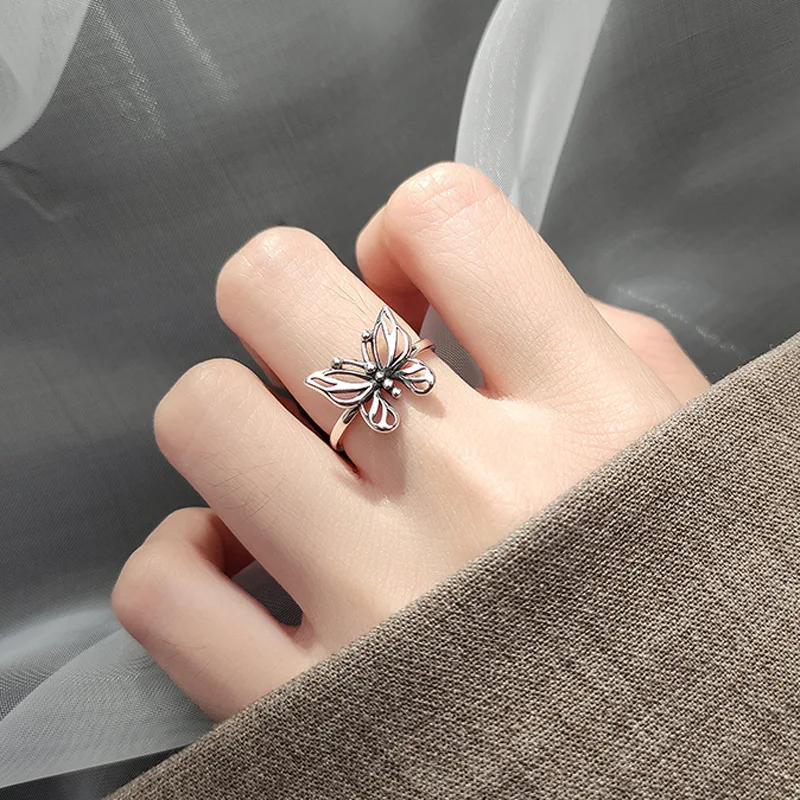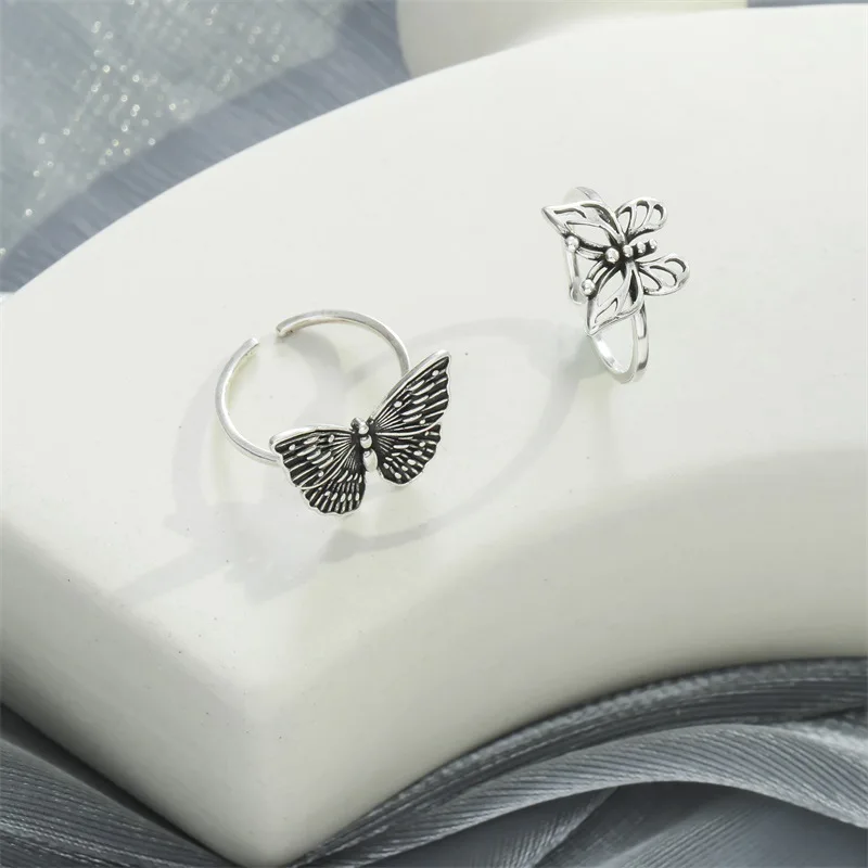2021 Harajuku готические винтажные полые кольца в форме бабочки для женщин регулируемые яркие ювелирные изделия