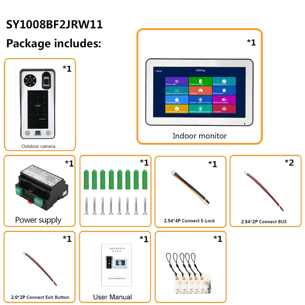 Беспроводной Wi-Fi 10-дюймовый шина с 2 проводами, сканер отпечатков пальцев, рчид, видеодомофон, система с поддержкой удаленного приложения, система контроля доступа к дому