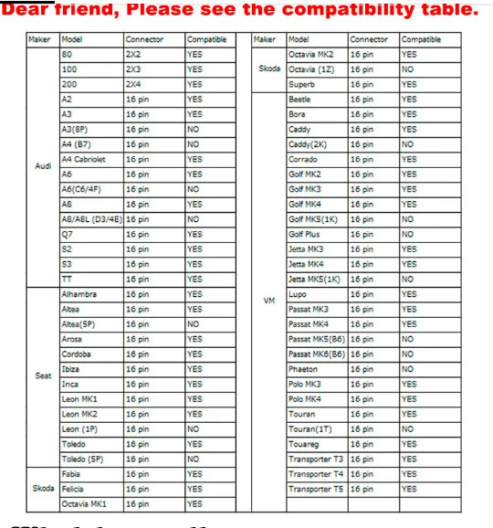 Особенности:Это соединительный кабель адаптера для Fiat.3 штыря диагностического разъёма (DLC) для всех этих сканер штрих-кода диагностический интерфейс со стандартным 16-контактный диагностический разъем OBD II.Этот адаптер можно использовать как совместимый интерфейс или инструмент.Преобразует Стандартный OBD2 3 pin привести к тому, что 16 контактный разъем для Fiat, для Alfa Romeo или для Lancia.Это только адаптер и должен использоваться в сочетании с оборудованием, совместимым с транспортным средством.