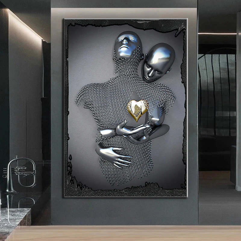 Металлическая Статуя, художественный плакат и принты, романтическая скульптура, холст, живопись, Современная гостиная, домашний декор