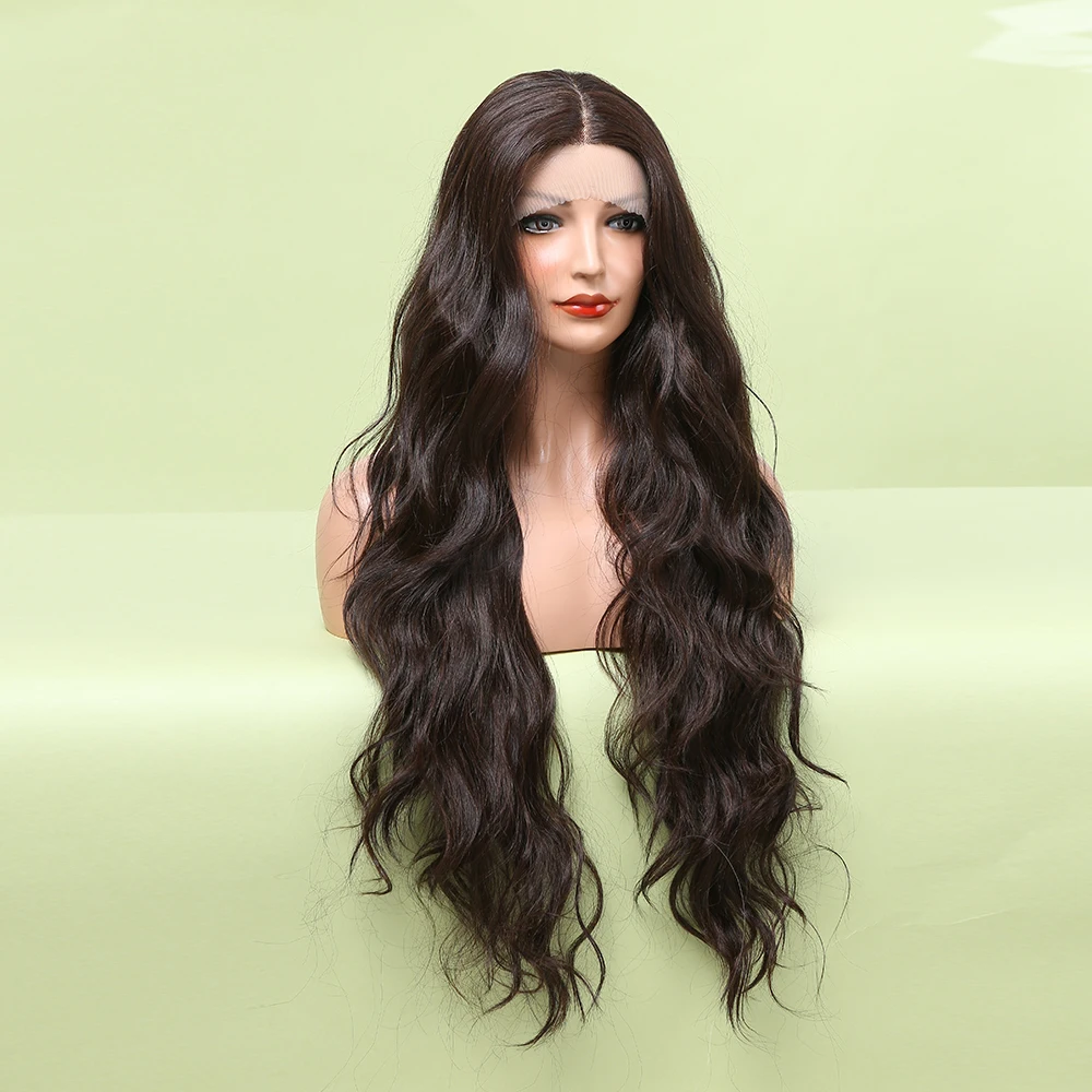 Длинные парики с волнистым кружевом для чернокожих женщин, парик из синтетического кружева средней длины, термостойкий