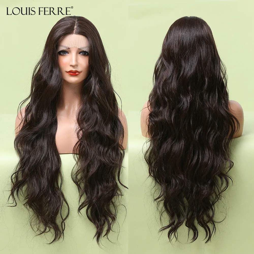 Длинные Синтетические парики для женщин, темные коричневые натураль...