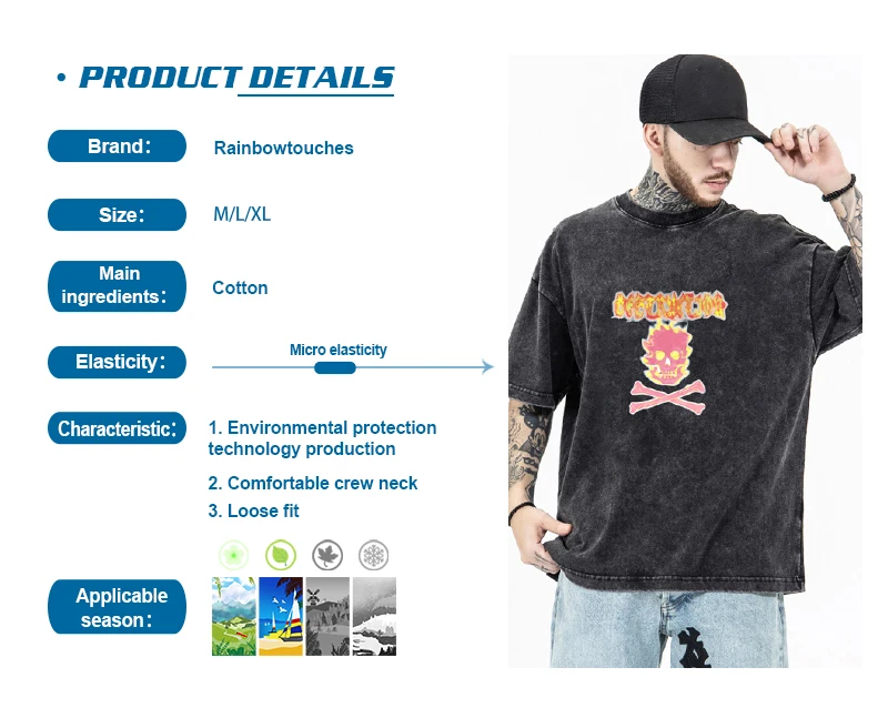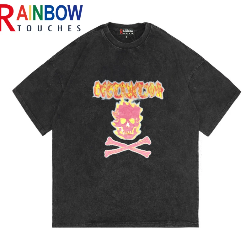Новинка 2021, Мужская футболка Rainbowtouches с коротким рукавом, унисекс, модная повседневная свободная футболка в стиле Хай-стрит с принтом черепа и скелета, панк, хип-хоп