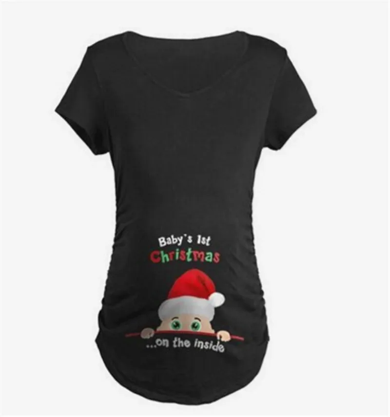 Черная Футболка для беременных с надписью "Merry Christmas", женская футболка с коротким рукавом для беременных, новая одежда для мам